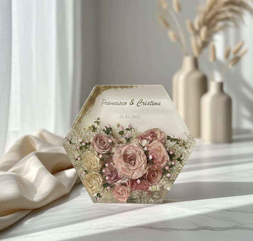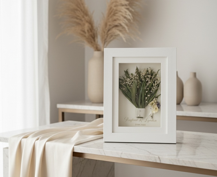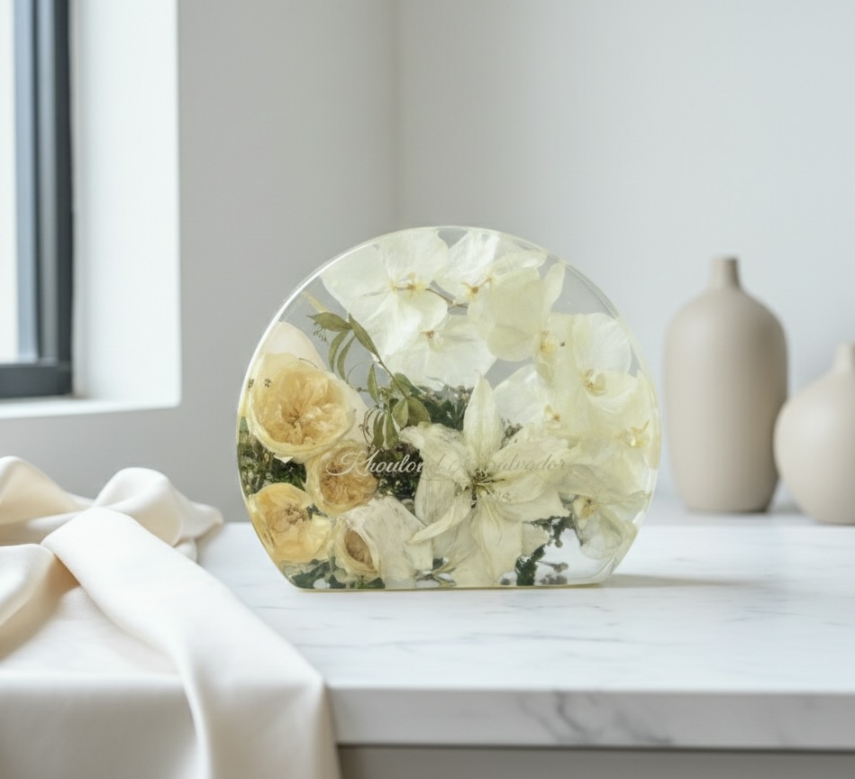 Perfect for partial bouquets or selected flowers. A minimalist yet sentimental piece that spotlights your most menaingful flowers without overwhelming the composition.